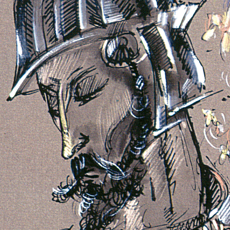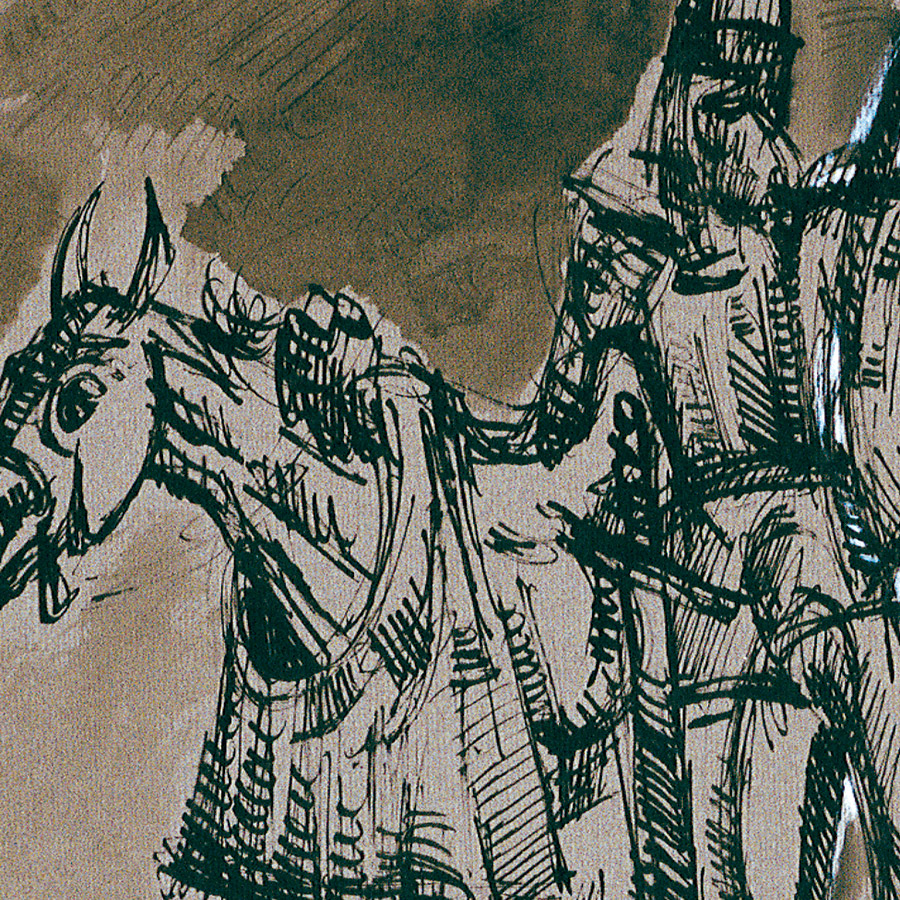 Mário Mendonça nutre uma relação artística profunda com a figura de Dom Quixote. Ele desenhou o grande personagem de Cervantes muitas vezes, em variadas interpretações. Essas obras são carregadas de sensibilidade, marcando um jogo de espelhos entre a alma do artista e a do cavaleiro da triste figura. Como escreveu Ana Lígia Medeiros, os desenhos de Mario levam o observador “a caminhar lado a lado com os cenários e sentimentos que retratam a viagem entre o sonho e a realidade, empreendida pelo sempre memorável cavaleiro andante”. Essa abordagem demonstra a forte conexão emocional e simbólica que o artista estabelece com suas figuras, como Quixote, que carrega ressonâncias tão profundas quanto os retratos sacros de Cristo.